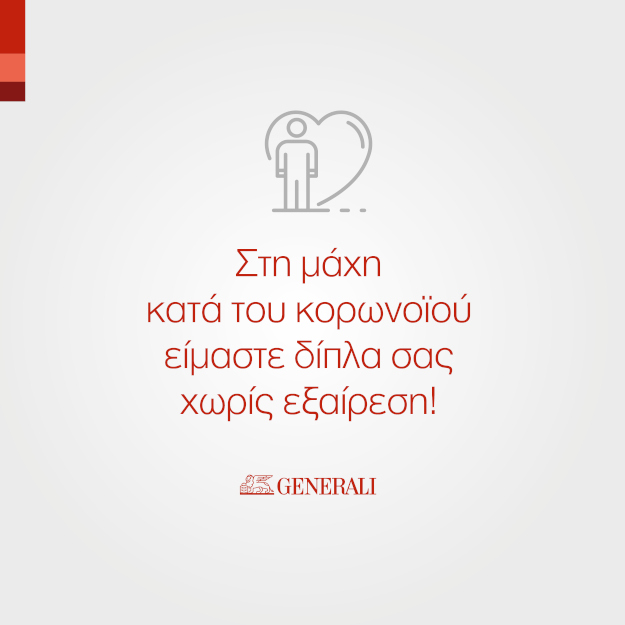 Καθώς η εξάπλωση του νέου κορωνοϊού SARS-CoV-2 αποτελεί ένα διαρκώς εξελισσόμενο φαινόμενο, η Generali σε διεθνές επίπεδο αλλά και στη χώρα μας, εφαρμόζει πρωτίστως μέτρα για την προστασία του ανθρώπινου παράγοντα, πελατών, συνεργατών, υπαλλήλων.