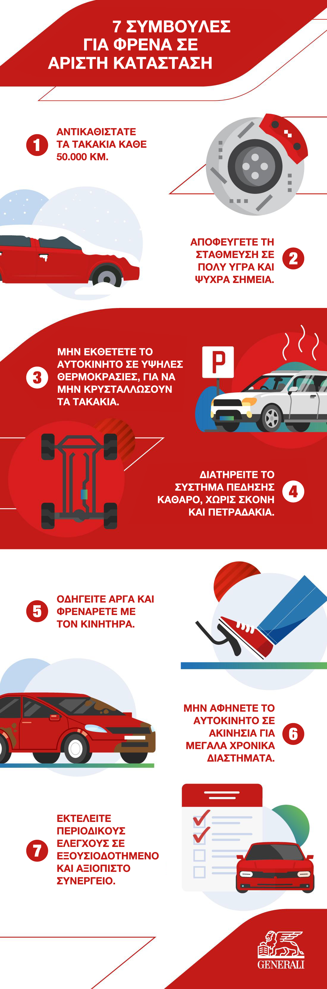 ✅Να θυμάστε: Αν τα τακάκια έχουν φαγωθεί πολύ, το όχημα χάνει μεγάλο μέρος της ικανότητας πέδησης. Για αυτό, συνιστούμε να επισκεφθείτε συνεργείο και να τα αλλάξετε το συντομότερο δυνατόν.